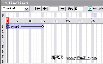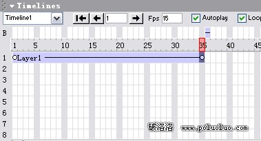 我們在Timeline上的最後一幀(第15幀)按下鼠標並拖拽,將最後一幀拖拽到第35幀。