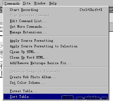 3、(1)雖然表格是做出來了,不過有時我們需要對表格中的數據進行排序,這DW當然也想到了,先選中表格,然後選擇菜單欄commands/sort table。