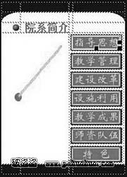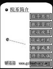 我們要制作出一列7個按鈕的圖片,並且在這一列的按鈕圖片的前面加上一個指針,我們要實現的效果是當我們在將鼠標移向某一個按鈕圖片的時候,這個按鈕上面的文字變換顏色。並且指針指向這張圖片(效果如圖1所示)。