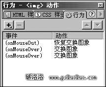 交換圖像的制作原理是應用到Dreamweaver中的行為面板上的翻轉圖像(Swap image)這一個工具。將它設置成為當產生鼠標懸停在某一個按鈕圖片的動作的時候,讓按鈕本身實現一個圖像的交換(交換成為黃色文字的圖片),與此同時設計指針圖像的交換(交換成為指針指向當前按鈕的指針圖片),以實現上述效果的實現。