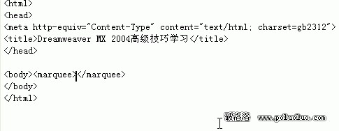 4.轉換到代碼視圖。把光標插入點放在 marquee標簽內。