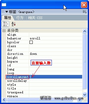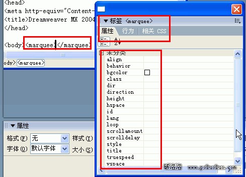 在網頁中,制作滾動字幕使用marquee標簽,如果用手寫的方法,實在是太麻煩了。從Dreamweaver MX 2004開始,可以使用“標簽選擇器”插入各種標簽,並且可以使用“標簽檢查器”設置標簽的屬性值,它的功能類似於屬性面板,但是比屬性面板更強大。