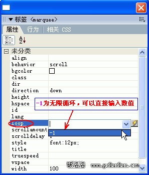 13.loop屬性設置字幕內容滾動次數,默認值為無限。“-1”也為無限。