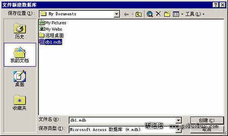 打開Microsoft Access,選擇 文件 -〉新建數據庫,然後選擇一個位置保存你的數據庫文件,這裡我們按它默認的db1.mdb命名保存。