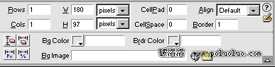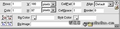 同樣在網頁中指定位置插入一個單行單列的表格,用鼠標單擊表格外框的任何一個部位以選中它,在屬性板中將“Border”值設定為1,也可以同時將另外的“CellPad”和“CellSpace”置零,如圖: