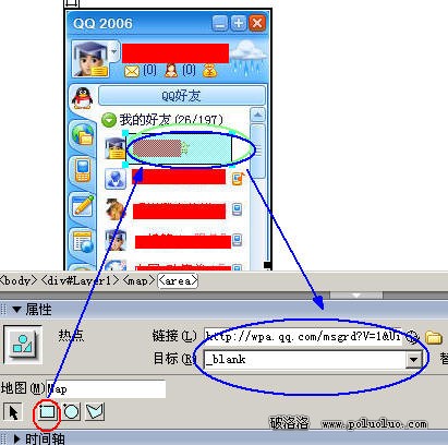 提示:插入圖片後,可以對圖片進行熱點區域的設置。我只是象征性的做了一個熱區,至於QQ在線咨詢的代碼是...大家應該知道吧?在這裡公布下,以後不要再問了。