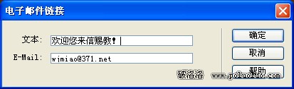 或點插入菜單選“電子郵件鏈接”彈出如下對話框,填入E-Mail地址即可。