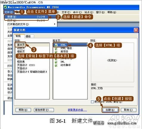 ( 1 )新建文件,操作如圖 36-1 所示。