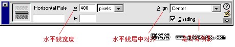按鈕,就插入了一條水平線。 在屬性面板中,設置水平線的寬度W為400像