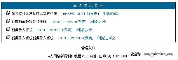 也是一個思考過程,建站--建立各功能目錄--建立數據庫--建立後台文件--建立顯示記錄頁面---完善程序例如編輯刪除功能