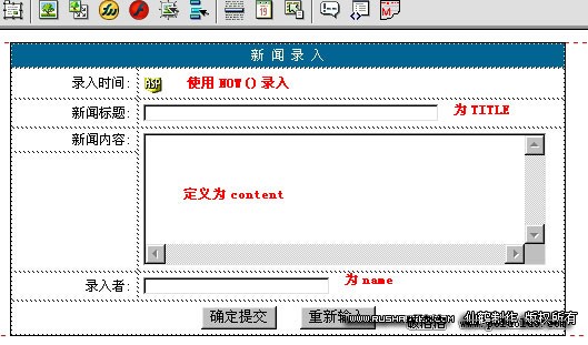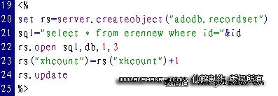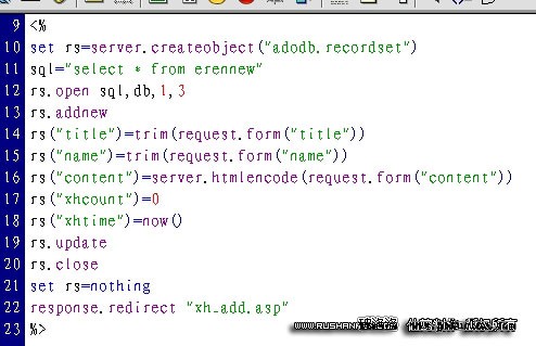 這段代碼主要就是聲明一個記錄集,然後起名RS,用記錄集來添加新聞!