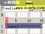 2.這時,我們點擊ALT + F9 打開時間軸面板,DW已經為我們添加了默認的時間軸Timeline1,然後,我們選中我們要滑動的圖層layer4,在上面點擊右鍵,選擇 [添加到時間軸] 這時我們可以在時間軸面板中看到我們剛剛制定的圖層layer4,這說明,我們已經添加成功了!