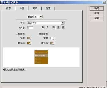 3.點擊“外觀”選項,名副其實這裡可以設定你的菜單外觀,可以選擇垂直菜單還是水平菜單,字體的大小,是否居中,和菜單的一般狀態和鼠標滑過的樣式。如下圖: