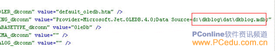 可以看到dkurl.aspx所在的物理路徑就是:D/dkblog/,那數據庫的物理路徑自然是:D:/dkblog/dat/dkblog.mdb。