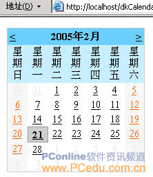 圖10-4 dkCalendar.aspx在IE中的浏覽