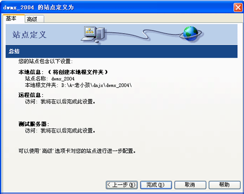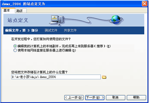 選擇標有“編輯我的計算機上的本地副本,完成後再上傳到服務器(推薦)”的選項。 在站點開發過程中有多種處理文件的方式,初學網頁制作的朋友請選擇此選項。