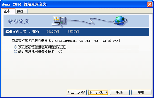 單擊“下一步”。出現向導的下一個界面,詢問您是否要使用服務器技術。