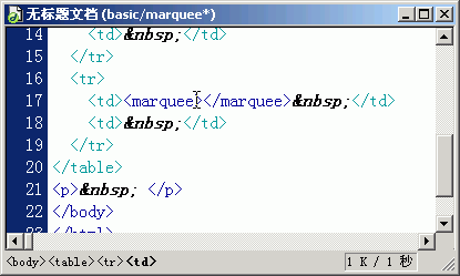 4.轉換到代碼視圖。把光標插入點放在 marquee標簽內。