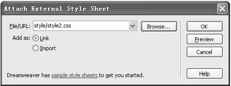首先我們給頁面鏈接一個已經編寫好的CSS文件,這裡的操作與老版本Dreamweaver的方法是相同的(圖1)。
