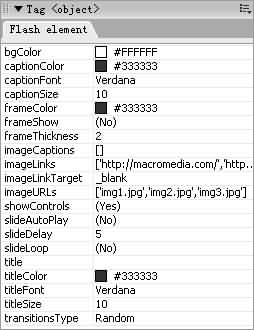 首先點擊圖片浏覽按鈕在頁面中插入Flash Element並保存,選中插入頁面中的動畫元素,這時在原來的標記對話框基礎上會跳出來Flash Element元素的屬性(圖3)。
