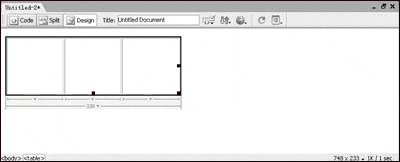 第一步 新建一個頁面,然後通過“Insert→Table”命令插入一個一行三列的表格,此時可以先不管它的寬度,而是通過下述設置讓它自動伸展適合浏覽器窗口。