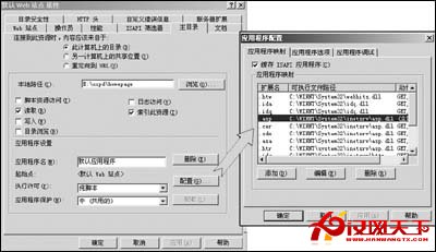 ASP是一個服務器端的腳本環境,即當腳本運行在服務器上(注意不是客戶機)時,Web服務器完成所有的工作。也就是說,程序員不必擔心浏覽器是否能處理ASP頁面,因為Web服務器會代替浏覽器完成頁面的轉化工作。由於Web服務器是通過Windows 2000 Server中的IIS來實現的,因此,筆者首先將排查的重點放在了IIS的站點設置上。進入“控制面板→管理工具→Internet 服務管理器”,選中“默認Web站點”,然後點擊右鍵選擇“屬性”,在“屬性”設置框中查找與ASP有關的設置項。在“文檔”設置欄裡,將主頁文件Index.asp添加為默認文檔;在“主目錄”的“應用程序設置”欄中,點擊[配置]按鈕後,在“應用程序映射”框中發現與ASP有關的應用程序映射已經添加(見附圖),但在“應用程序調試”框中,發現“啟用ASP服務器端腳本調試”和“啟用ASP客戶端腳本調試”未選中,於是將其選上。