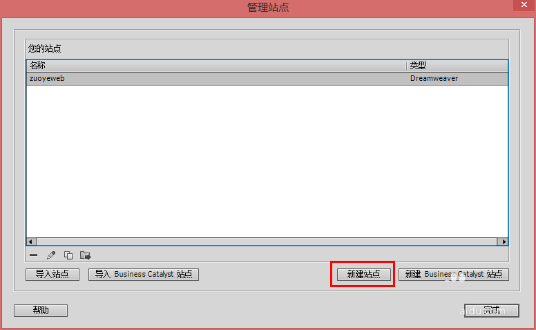 3、打開管理站點中的“新建站點按鈕”。