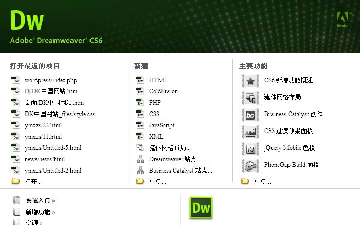 1、打開DW軟件,選擇一個空白的html文檔,打開新建一個空白網頁。在這裡我們做一個簡單的示例和演示。