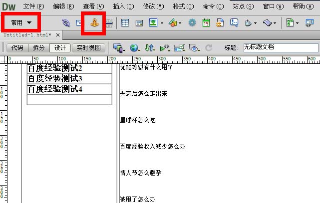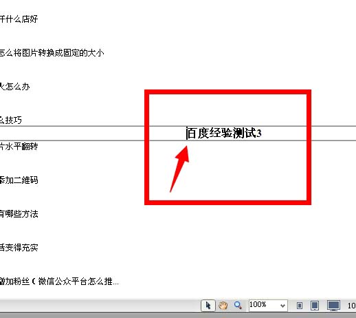 3、我們以百度經驗測試3為示例,從頭到尾的為大家演示一下錨點鏈接的制作。首先,我們要選中右側表格中的測試3,把光標移動到測試3的前面。