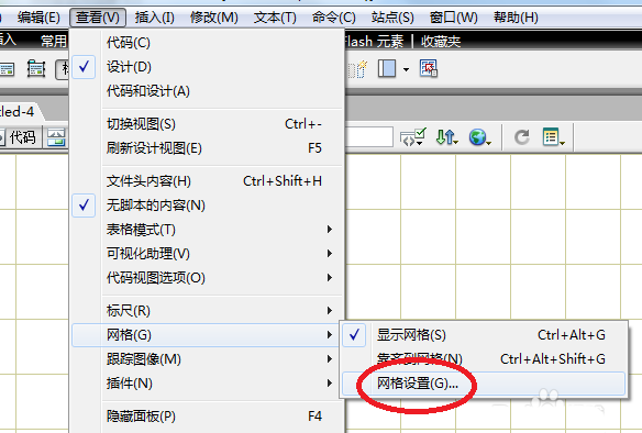 1、顯示網格。在DIV布局中首頁要顯示網格,能更加直觀的通過網格來繪制層。點擊查看\網格\顯示網格。