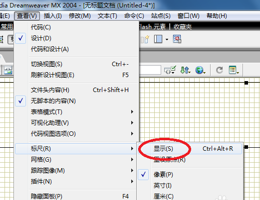 3、顯示標尺。點擊查看\標尺\顯示,可以顯示標尺。