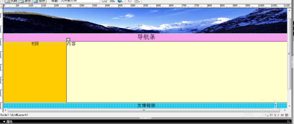 5、在圖像下面繪制一個層,設置屬性用來放置導航條。並繪制其他的層來放置內容。