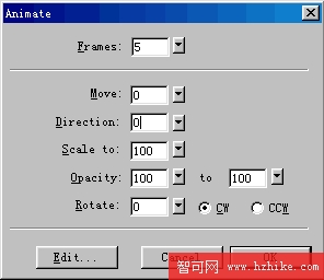 6、最後我們需要做的就是打開幀(Frame)面板,調節一下幀的播放速度。基本上調節到15--20幀/秒就可以了。現在讓我們來看一下效果吧!