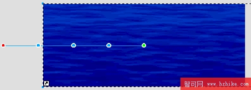 4、這時我們得到了一個含有很長的波浪圖的動態符號,點擊它,然後水平拖動圖片上出現的紅色原點,不要將它拉的太長,以免出現圖像運動出場景外的現象。