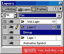 5、現在執行最關鍵的一步,打開圖層2,選定其中的波浪圖,點擊圖層面板右上方的混合模式列表,選擇Tint(色彩)模式。最後,在透明度選項上指定該圖的透明度為50%。