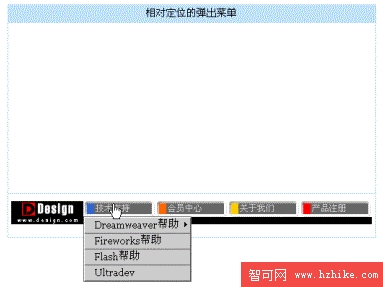通常我們從Fireworks中導出彈出菜單到Dreamweaver中後,彈出菜單的位置都是絕對定位,與它在Fireworks中的位置是相同的。當我們需要將其放置在其他位置時,我們不得不重新回到Fireworks中重新調整他在整個頁面中的位置,這樣反復操作非常麻煩。其實我們可以利用Dreamweaver中的相對定位方便的將下拉菜單放置在頁面中的任何地方,過程也比較簡單。