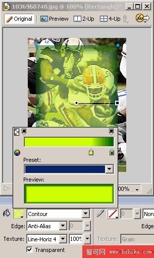 進入Fireworks MX 2004,很明顯的,你會發現矢量圖形繪制工具強大很多。而繪制圖形後的矢量填充設置也有了更形象化的改進。看看填色設置表,有沒有發現多了一樣東西?是的,這就是FWMX 2004版本新增的等高漸變填充Contour。