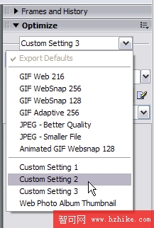 5.儲存最優預設值 為利於重復使用,有必要儲存你最滿意的影像優化設置。選擇優化面版右上角彈出菜單中的Save Settings...,你的新設定選項將出現在優化面版頂端的下拉菜單內。