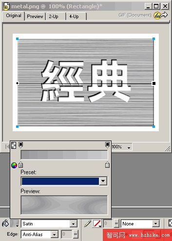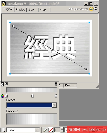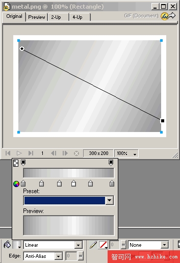 http://www.playingwithfire.com/dazzle/styles.ZIP 在FW內除了漸變方向之外其他都不能編輯。那麼這麼細膩的金屬面版紋理效果Fireworks本身能夠實現嗎?答案是肯定的。我們先看下這個效果圖: