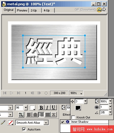 打上粗體字,不要選圓角的字體,這樣會破壞金屬面版的硬度感。再用內陰影營造镂空的感覺。