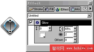 4、選擇Ellipse Tool(橢圓形工具)按住Shift鍵繪制正圓形。注意該圓形要小於底圖矩形。然後為圓形填充直線漸變,漸變定部為黑色,底部為灰色。最後,選中圓形,引用Shadow and Glow中的Glow(外發光)命令,指定發光顏色為白色。具體設置見圖。