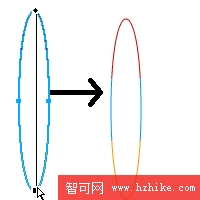 然後我們來設置線性漸變的方向,使用黑色箭頭工具移動黑色小圓點到橢圓形的頂部位置,然後把黑色的矩形點拉到橢圓形的底部位置,這樣就有了如下圖所示的形狀。