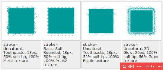 通過改變筆觸及其類型,筆尖的柔軟度,筆尖的大小和添加的材質總量,你可以作出令人驚異的各種邊框效果。你可能還希望繼續探索如何運用筆觸。但你要記住的重要的事情是,你要添加筆觸於其上的圖片塊和筆觸本身應該與你要放置圖形的頁面背景是同一顏色。