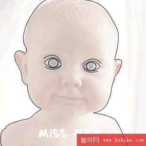 6、最後,描繪頭發,這一部分由於要求比較細致,所以不比刻意描繪,勾勒出一個形態就可以了。全部完成描摹後,按下Ctrl+A全選場景中元素,再按下Ctrl+Shift+Alt+Z將它們轉換成位圖。按照您自己的意願填充些顏色就可以了。有一些比較細致的部分填充顏色不能完成,那麼這一部分我們可以通過放大場景,利用筆刷工具來完成對有缺陷部位的填補。我所完成的最終的效果見圖。