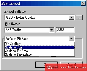 3. 設定校准選項在Batch Process對話框中選擇Export,或是你也可以按下右邊的...鍵,Batch Export對話框就會被 開啟。在校准外跳窗口中有三個選項,你可以依狀況選擇其中一個:
