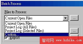 在Files to Process的外跳窗口中選擇Custom,在Open對話框中選擇你要批次化的檔案,再按下Add。 重復這個步驟直到你把檔案都選好,最後按下Done。