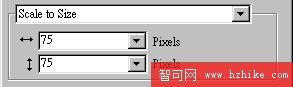 如果你想要調整你的批次化檔案,讓它水平或是垂直尺寸符合你的要求,你可以選擇Scale to Size 然後輸入你要的大小。或者你想要所有的壓縮檔都是75像素(pixel)寬,就在水平大小區裡輸入75,然後在垂直大小區裡輸入Variable。這樣一來,Fireworks在執行批次化指令時,寬度就會是75像素寬,高度會依照寬度作適度的調整。