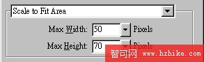 當你想要將檔案大小壓縮至可以放進特定的區域,比如說,如果你想要把檔案放進表格,你的表格設定為橫式表格的寬為50像素(高等比),直式表格的高為70像素(寬等比),接下來就只要使用Scale to Area功能並在寬度和高度的尺寸中輸入50.70,你就會發現影像會被適度的校准,和你的儲存格配合的天衣無縫喔!