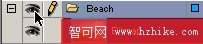 -單擊Beach層上的眼睛圖標使背景層隱藏.