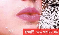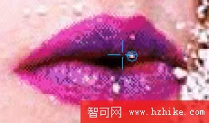 放大年輕的女人嘴唇到 200%.我們將用Rubber Stamp(印章)工具修飾這個圖像以去除它嘴唇上的雪花斑點.